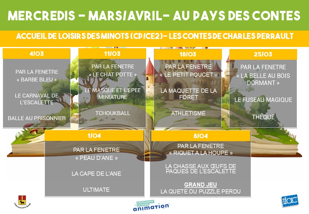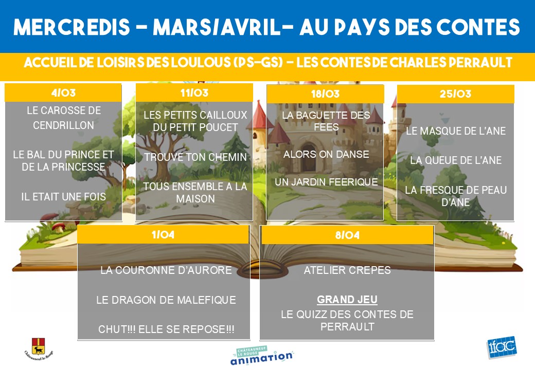 Tout au long des mercredis, les enfants vont plonger dans l’univers magique des contes et des histoires merveilleuses. Princesses, chevaliers, dragons, sorcières et héros fantastiques seront au rendez-vous pour vivre des aventures extraordinaires.